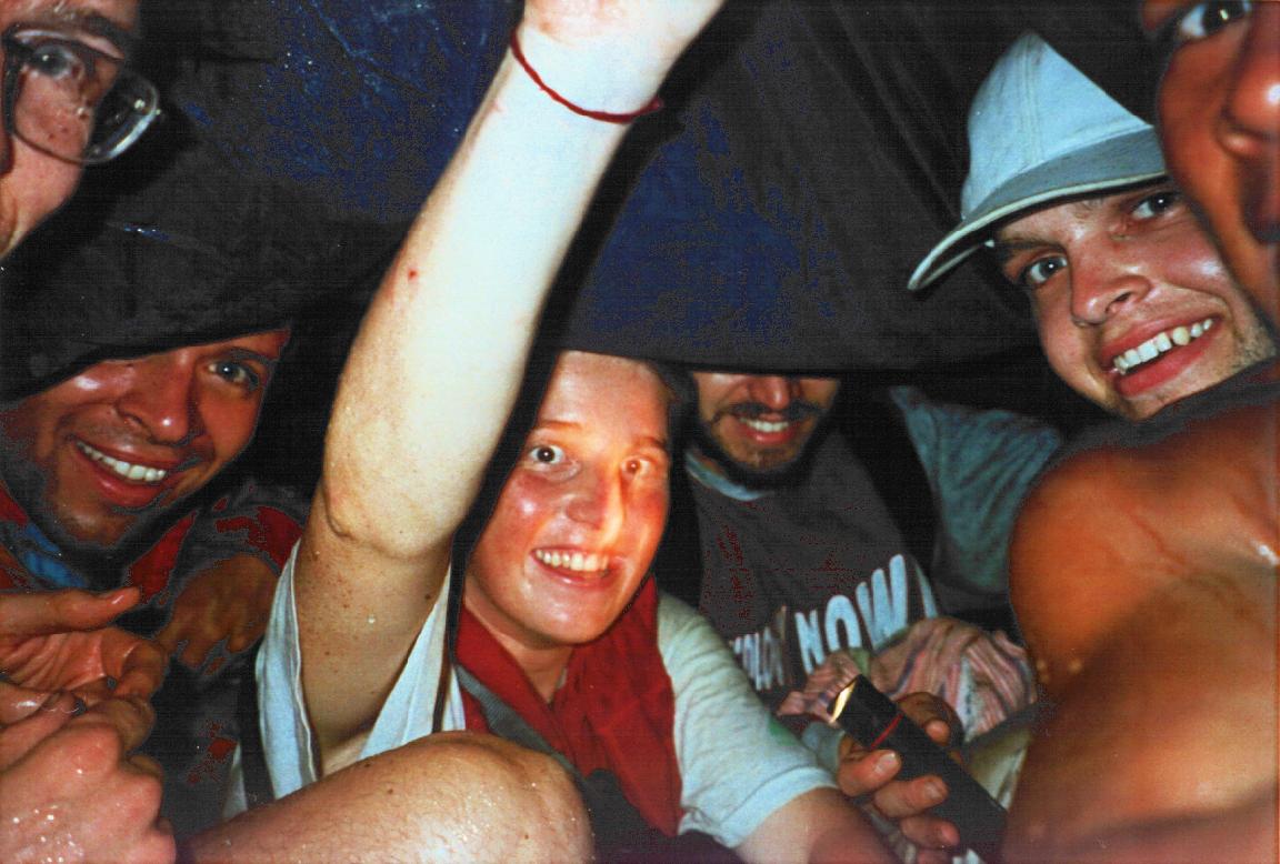 Sheltering from downpour: Rob, Umberto, Carlotta, Roberto, Mattheas and Conrado