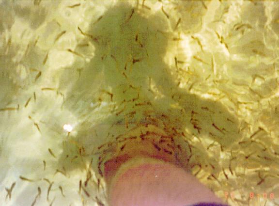 Little fish swimming around my leg